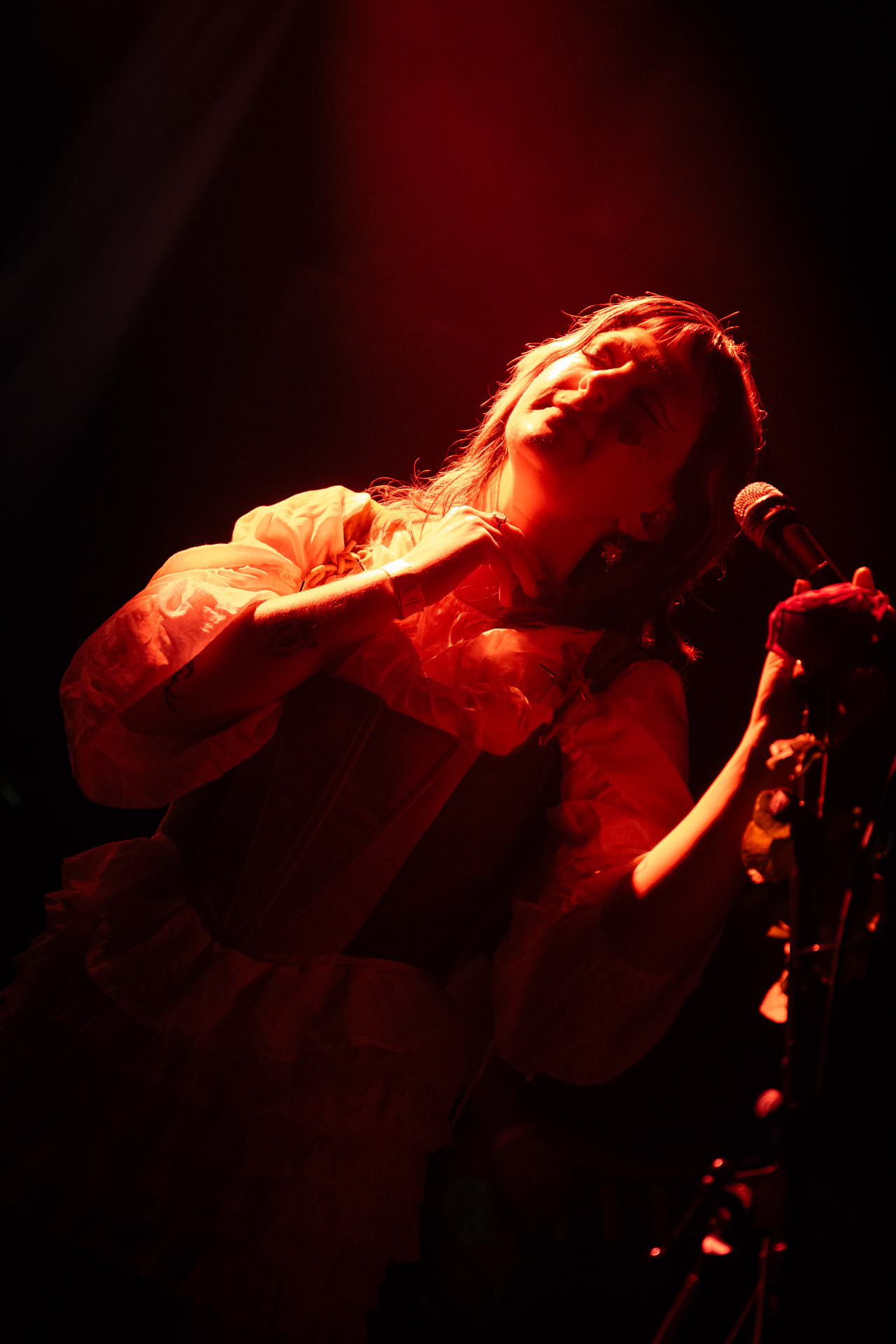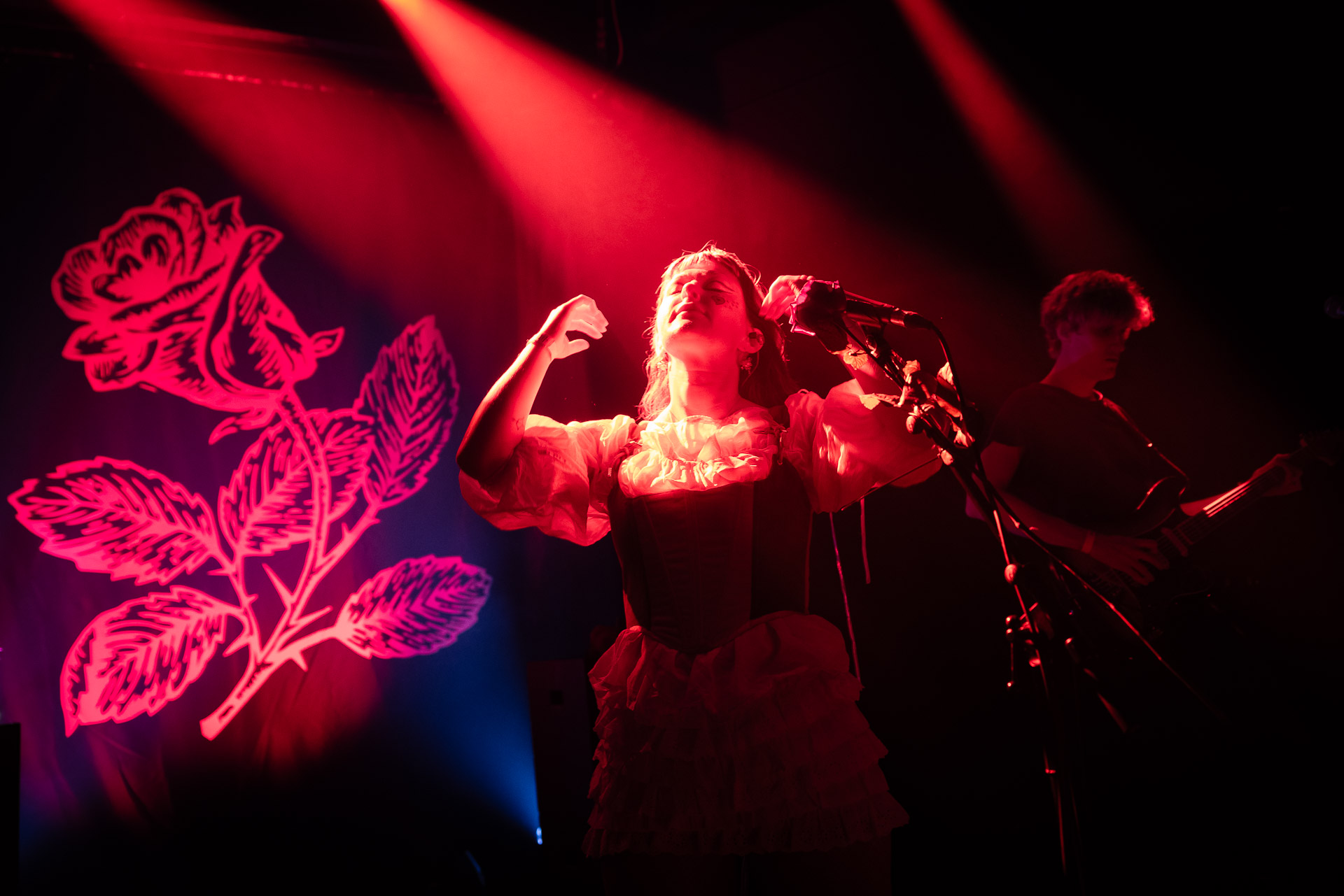 Dans cette histoire maintes fois rejouée, le groupe s’appelle cette fois-ci Yumi Zouma, sur la foi de leur dernier et excellent album, No Love To Kindness, on l’avait classé dans la catégorie " indie-rock à la cool un peu bordélique un peu dissonante avec une alternance voix fémine -voix masculine façon Sorry" (qui jouait d’ailleurs le lendemain à la base mais a finalement reporté son concert) Et donc on se retrouve au Trabendo avec une salle étonnamment pleine, sans afficher complet avec de vrais fans qui connaissent certaines chansons par coeur et ont l’air de passer un super bon moment dès le moment où les lumières s’éteignent et que le groupe, limité ce soir à la chanteuse Christie, accompagné de Josh et Charlie qui s’échangent régulièrement une Squier Bass VI (décidément remise à la mode chez les groupes indé) et une guitare. La batteuse Olivia n’est donc pas là, de même que les claviers que le groupe semble utiliser habituellement sur scène... Il y a donc un playback avec les parties rythmiques et les sons de clavier.